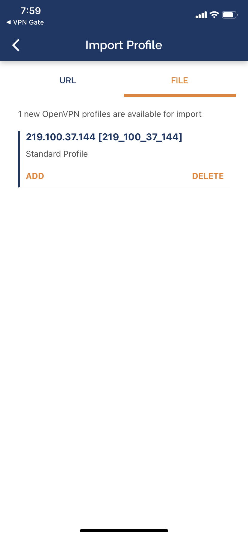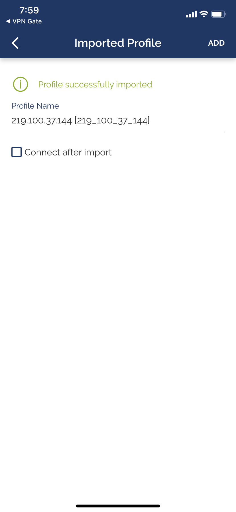 [4-'ADD'를 클릭하여 VPN 파일을 적용한다.]