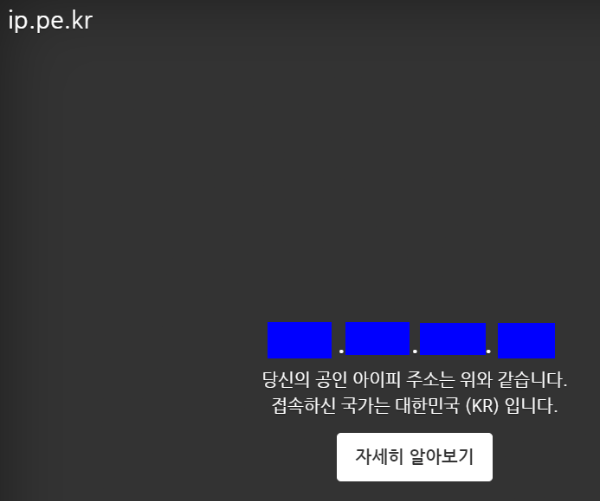 https://ip.pe.kr/ : ###.###.###.### 라는 공인 ip를 확인한다.