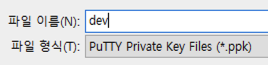 자~ 이제 로그인없이 바로 접속하기 위한 키(dev.ppk | ppk 이름은 원하는 이름으로 생성하면 된다.)를 만들었다.