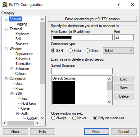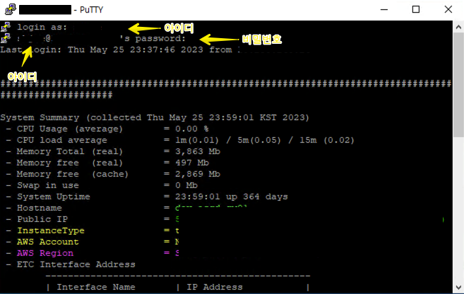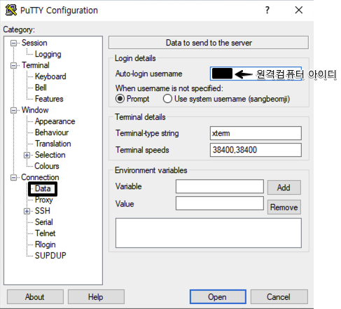 PuTTY로 원격 컴퓨터에 접속할 때, 원격 컴퓨터의 계정과 비밀번호가 설정되어 있다면,