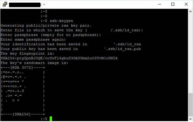 명령을 실행하고 계속 엔터를 누르면, .ssh 디렉토리 안에 id_rsa와 id_rsa.pub이 생성됩니다.